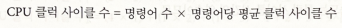 위의 식에서 명령어당 클럭 사이클 수(clock cycles per instruction)을 CPI로 줄여 부른다.