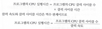 앞서 본 식은 프로그램 수행에 필요한 명령어 개수에 관한 사항이 포함되어 있지 않다. 하지만 실제 실행시간은 프로그램의 명령어 수와 관련이 있다.