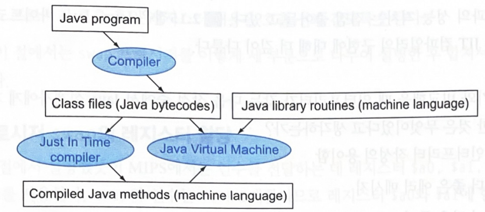 이 바이트코드를 JVM(Java virtual machine)이라 불리는 소프트웨어 인터프리터에 의해 실행된다. Java는 번역이 너무 간단해서 주소를 컴파일러나 JVM이 채울 수 있어서 별도의 어셈블리 단계가 필요 없다.